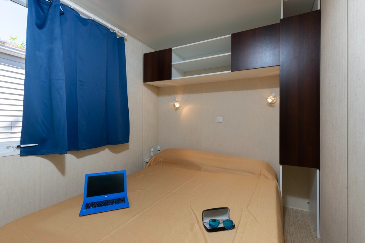 Mobilní dům má 2 ložnice, první vybavenou dvojlůžkem a druhou dvěma jednolůžky. Ložnice jsou vybavené přikrývkami, polštářky a úložnými prostory.